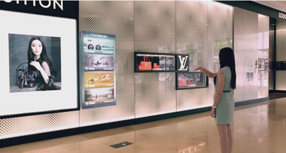 互動(dòng)櫥窗設(shè)備可將圖像投射到商戶臨街玻璃櫥窗的普通玻璃上(所有互動(dòng)櫥窗設(shè)備都放置在店內(nèi),畫面尺寸不限),顧客在店外隔著玻璃點(diǎn)擊圖像畫面,在店內(nèi)的互動(dòng)櫥窗設(shè)備可感應(yīng)到 ……