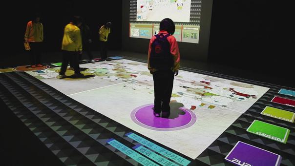 地面互動(dòng)投影系統(tǒng)采用懸掛在頂部的投影設(shè)備把影像效果投射到地面,當(dāng)參訪者走至投影區(qū)域時(shí),通過系統(tǒng)識(shí)別,參訪者可以直接使用雙腳或動(dòng)作與投影幕上的虛擬場(chǎng)景進(jìn)行交互,各種 ……