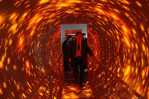 當(dāng)人沿通道橋步入隧道內(nèi),眼睛盯著旋轉(zhuǎn)的隧道內(nèi)容,人的行動(dòng)是受大腦指揮的,而大腦將接受下列信息才能發(fā)出指令:前庭覺將感受人體平衡信息(垂直或傾斜);視覺將感受人處地 ……