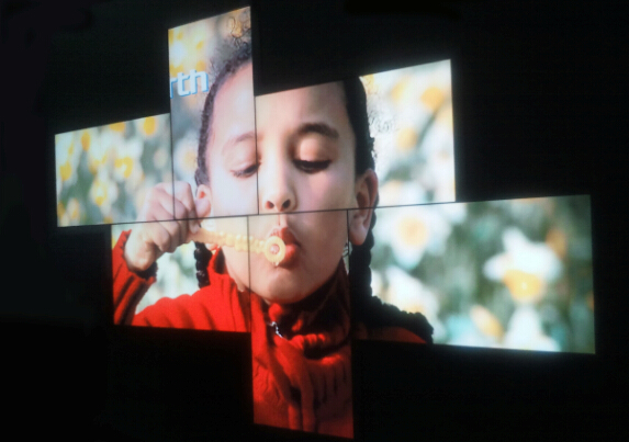 意異形拼接,從字面上理解兩個(gè)詞:“異形”“創(chuàng)意”,其實(shí)就是打破傳統(tǒng)常規(guī)的拼接擺放模式,以任意的顛倒位置,旋轉(zhuǎn)拼接出各種形狀的顯示樣式,有一些特定的場(chǎng)合,比方說商鋪的櫥窗 ……